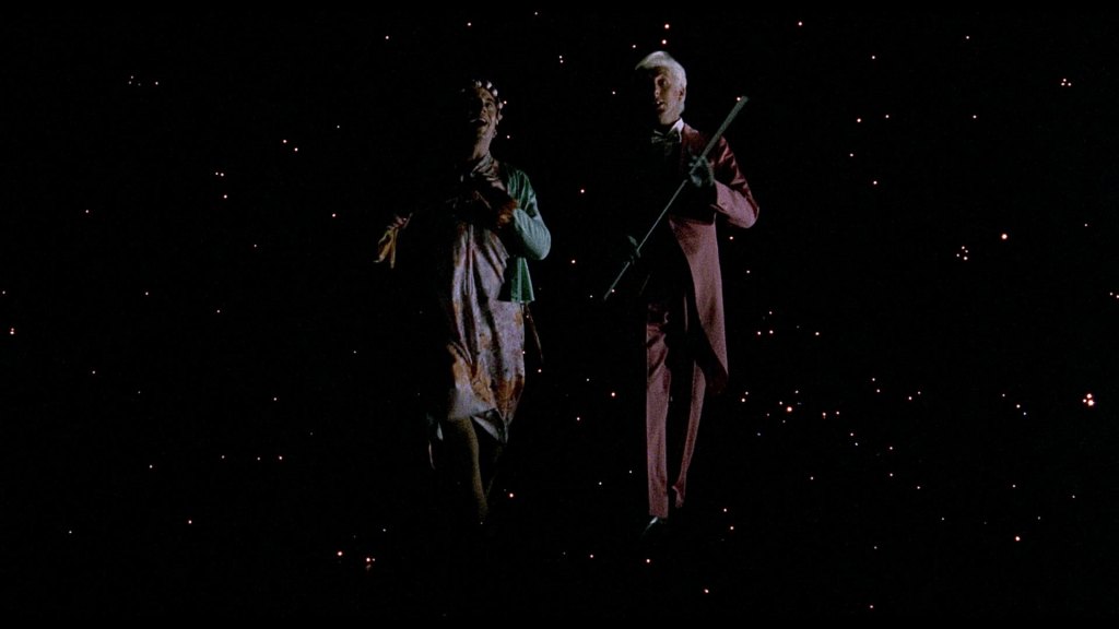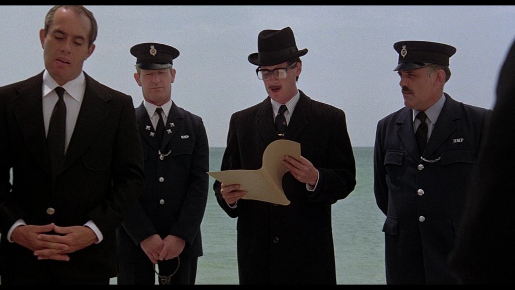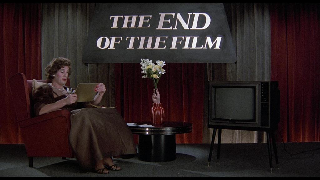 In the final scene, a hostess finally opens a sealed envelope that contains the “meaning of life,” which turns out to be simple advice: “Try to be nice to people, avoid eating fat, read a good book now and then…”—a perfect anticlimax to the film’s elaborate absurdity.