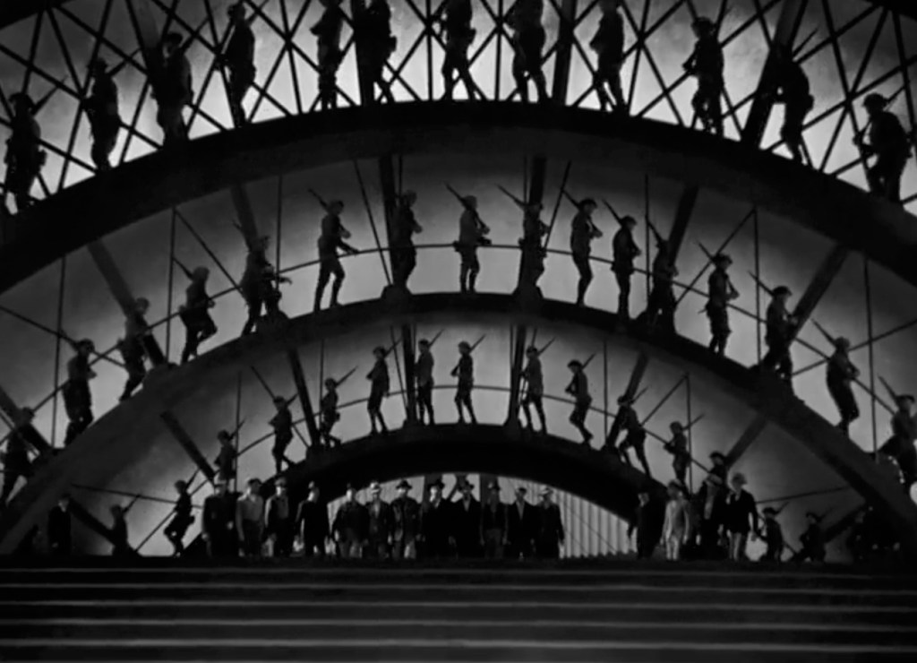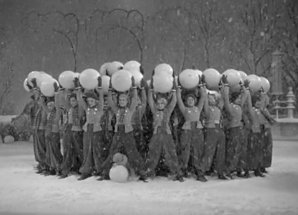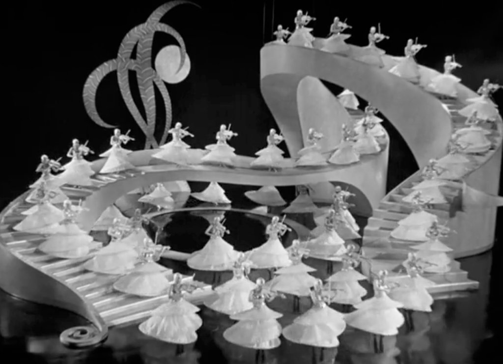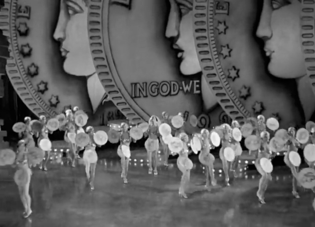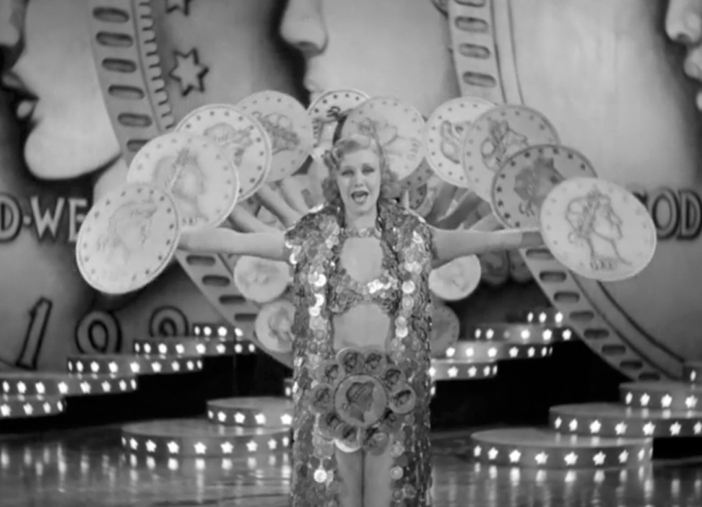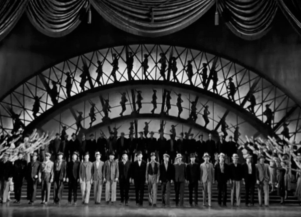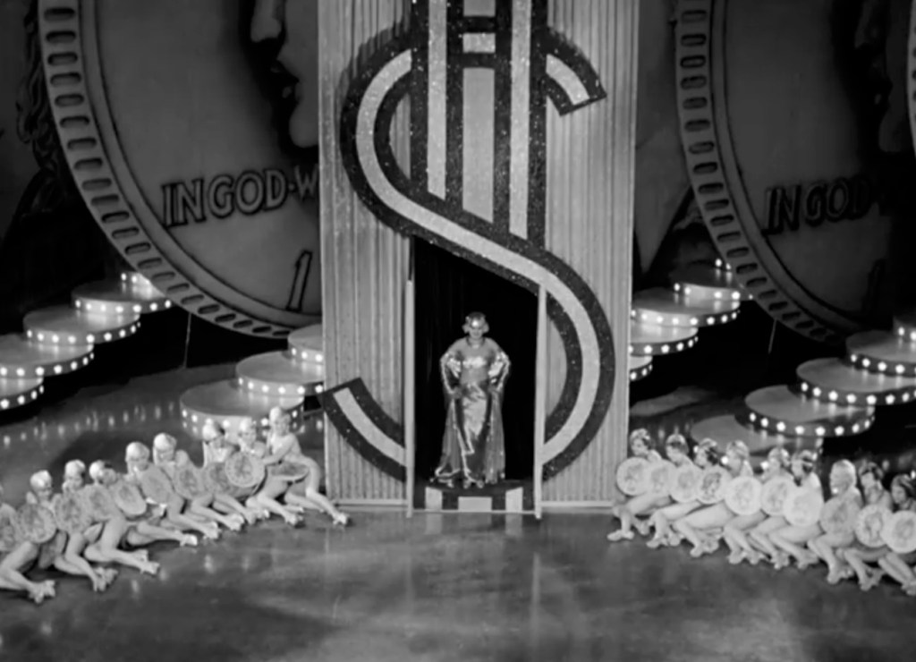 The film’s highlights are its musical numbers and choreography, which continue to be referenced and imitated by the renowned Busby Berkeley. His extravagant and colorful production sequences are the most iconic aspects of the film. Berkeley’s creative choreography, innovative camera techniques, and geometric patterns transformed the musical genre. The film also spawned the famous song “We’re in the Money” – Sung by Ginger Rogers (in part in Pig Latin). This number opens the film with a showbiz celebration of prosperity—ironically shut down by debt collectors.