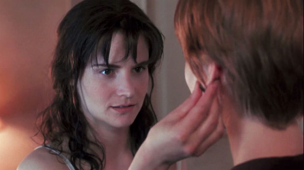 Enter Hedra “Hedy” Carlson (Jennifer Jason Leigh), a shy, seemingly sweet woman who responds to the ad. At first, Hedy appears to be the perfect tenant: quiet, considerate, and sympathetic to Allie’s recent emotional turmoil. The two women form a close bond, and Allie feels comforted by Hedy’s friendship for a while.