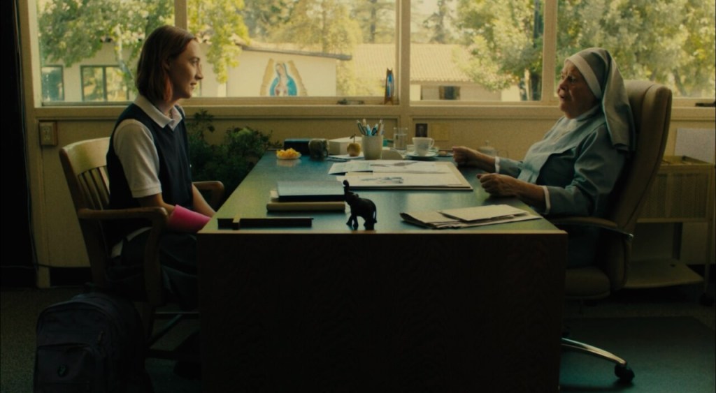 “Lady Bird” (2017) is a coming-of-age dramedy set in Sacramento, California, during the early 2000s. Written and directed by Greta Gerwig in her solo directorial debut, the film centers on the final year of high school for Christine “Lady Bird” McPherson (Saoirse Ronan), a spirited and headstrong teenager who yearns for more than her middle-class, Catholic school upbringing offers.