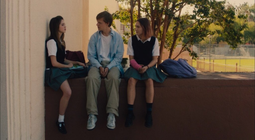 Lady Bird navigates friendship, first love, and identity during her senior year. Her best friend is the sweet and loyal Julie (Beanie Feldstein), but Lady Bird temporarily drifts away from her in pursuit of popularity. She dates Danny (Lucas Hedges), a kind but closeted classmate from her school’s drama program, and later becomes involved with the aloof and nihilistic Kyle (Timothée Chalamet), who embodies the pretentious hipster rebellion she thinks she wants.