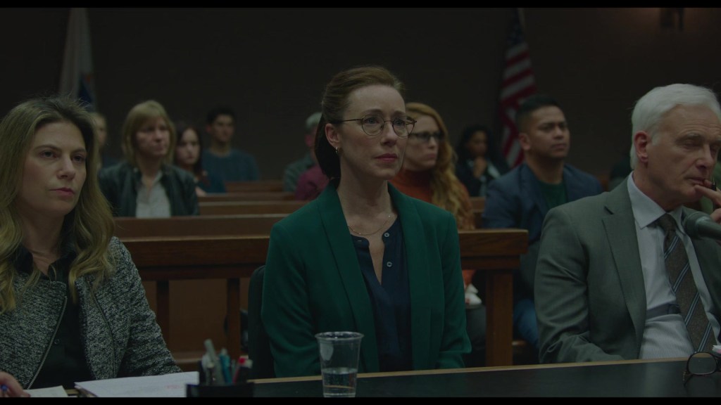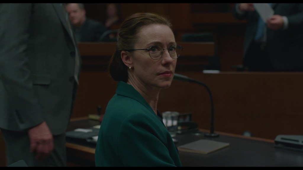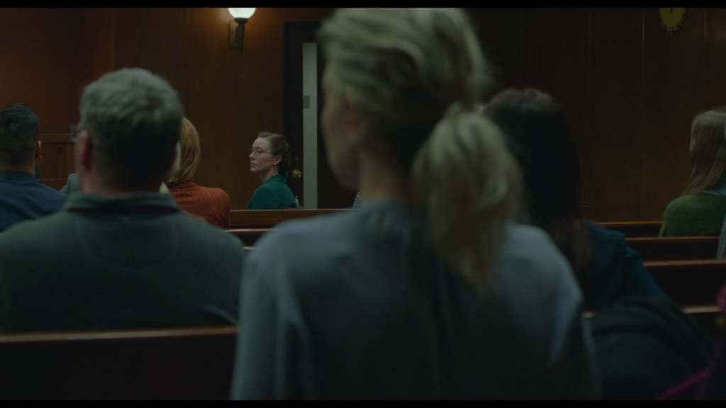 Martha, however, resists the performative aspects of grief, choosing instead to grieve privately and on her own terms. As the court case against Eva unfolds, Martha begins to reclaim her autonomy, culminating in a quiet but resolute moment in court where she refuses to assign blame. She acknowledges the tragedy and the situation’s complexity and ultimately chooses forgiveness over retribution.