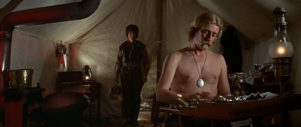 One of the more memorable episodes involves Jack becoming the lover of Mrs. Pendrake (Faye Dunaway), a hypocritical minister’s wife who espouses virtue but harbors deep sexual repression. He also works as a gunslinger and crosses paths with Wild Bill Hickok (Jeff Corey), witnessing the violent absurdities of frontier justice.