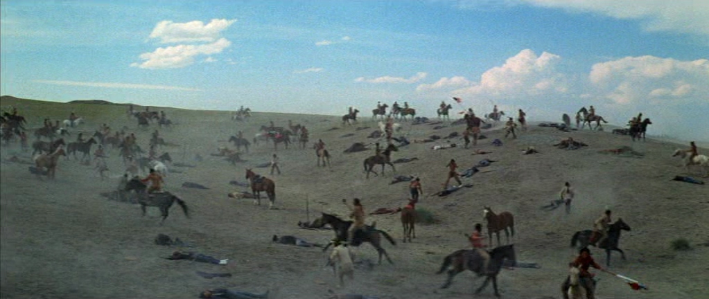The film’s climax comes at the Battle of the Little Bighorn in 1876. Jack, having rejoined Custer’s unit under false pretenses, witnesses the general’s arrogant leadership lead his troops to total destruction at the hands of the Native American coalition. Jack survives the battle and returns to Old Lodge Skins, who prepares for death with dignity and grace, only to find that he is not yet ready to die.