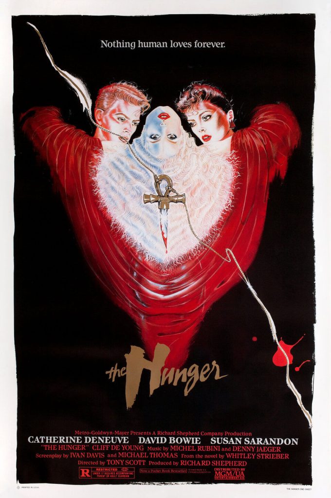 “The Hunger” is a 1983 horror film directed by Tony Scott in his feature directorial debut. Inspired by the 1981 novel by Whitley Strieber, the film explores themes of immortality, desire, and decay and is noted for its Gothic aesthetic and erotic undertones.