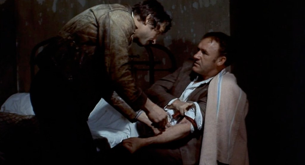 This portion of the film—intense, claustrophobic, and emotionally raw—follows Doyle’s physical and psychological descent as he succumbs to addiction. Eventually dumped in front of the American consulate, Doyle undergoes a grueling cold-turkey withdrawal under the supervision of French police. These scenes showcase Hackman’s astonishing performance as he battles the horror of detoxification with rage, confusion, and resilience.