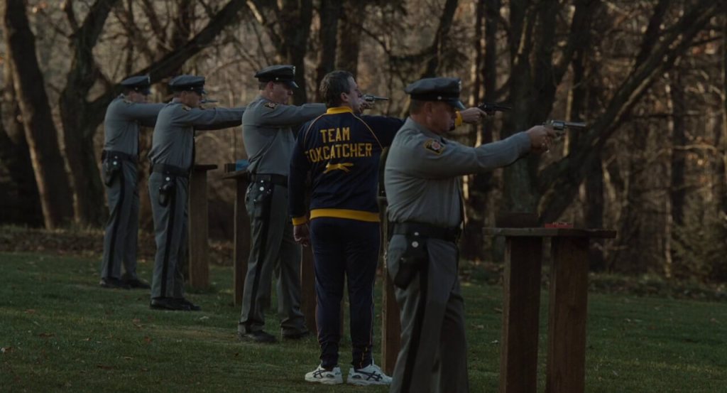 Director Bennett Miller adopts a minimalist, cold visual style—emphasizing the sterile opulence of the du Pont estate and the emotional barrenness of its characters. The film’s muted colors, sparse score, and deliberate pacing create a sense of unease that intensifies as the story progresses.