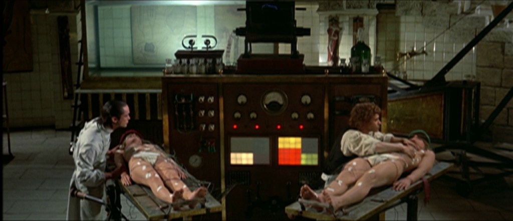 The Baron has constructed two patchwork creatures—a male monster (Srdjan Zelenovic) and a female monster (Dalila Di Lazzaro)—to breed them to create a master race under his control. However, the male monster lacks what the Baron deems “proper sexual drive.” Believing that a man with “the perfect Serbian libido” is the key, the Baron goes in search of the right head for his creation.
