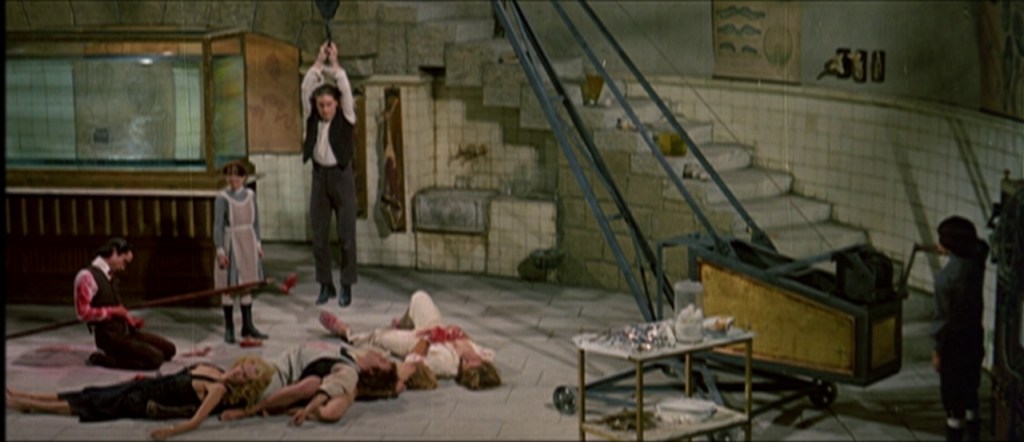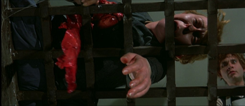 Eventually, the monsters rebel. In a climactic and gruesome sequence, the Baron is disemboweled, and the creatures, discovering their grotesque origins and lack of free will, destroy themselves. Nicholas is left horrified but defiant, refusing to carry on the Baron’s twisted legacy even as the dying Baron pleads with him to continue the experiments.