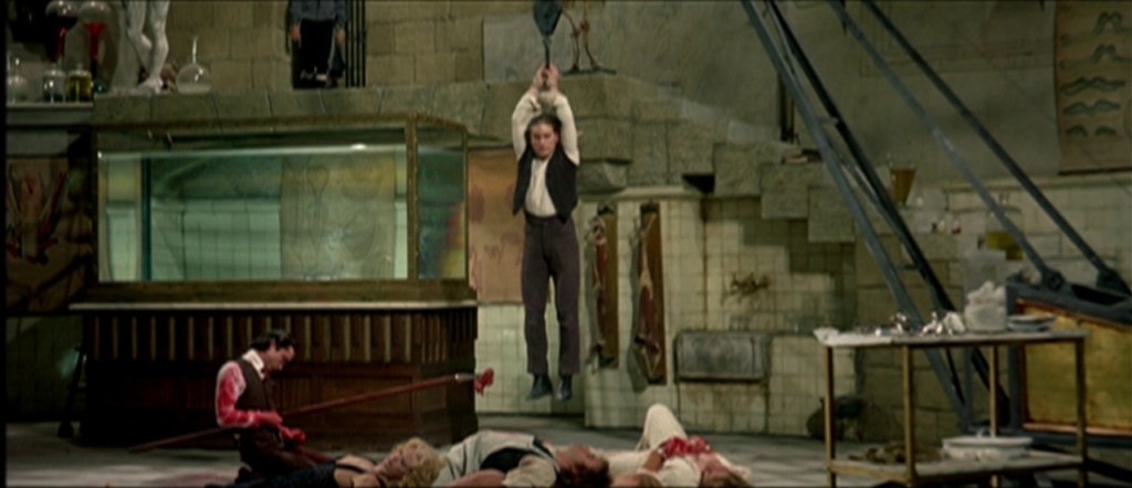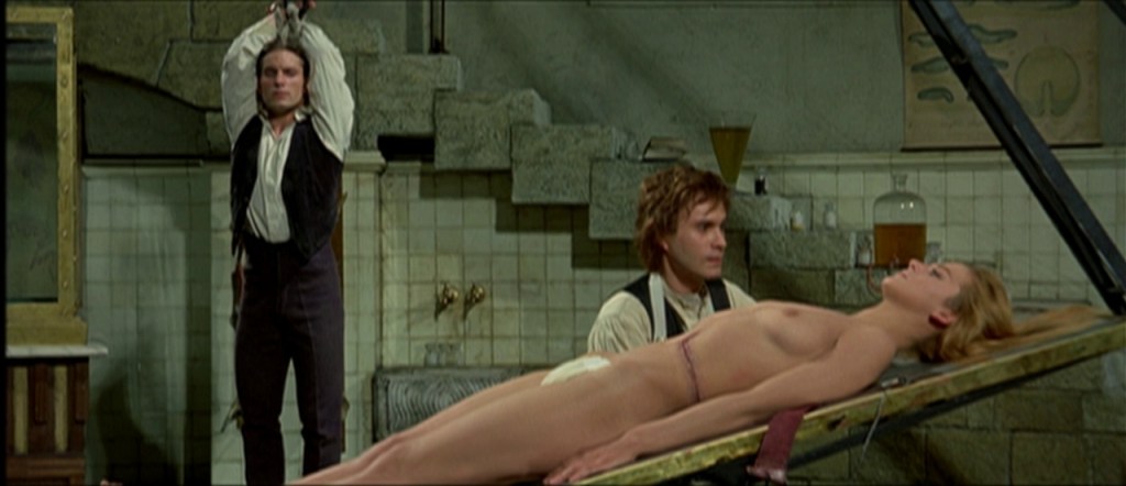 Meanwhile, Nicholas (played by Joe Dallesandro), a stable boy at the castle and a local libertine, frequents brothels with his friend Sacha, a sexually repressed young man. Mistaking Sacha’s quiet intensity for Nicholas’s reputed sexual prowess, the Baron has his assistant Otto (Arno Juerging) decapitate Sacha and attach his head to the male creature’s body.